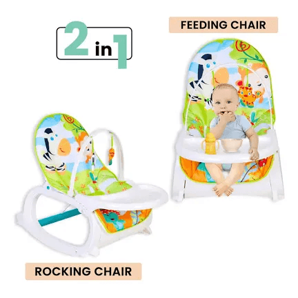 The Portable Baby Rocker with Dining Table is a reclining infant seat with a fold-out kickstand—great for feeding baby. Adjust the seat upright so baby’s movements create rocking motion—with stimulating toys and music to enjoy. For naptime, you can remove the toy bar and switch on calming vibrations. And as your child grows, it becomes a toddler rocking chair! 3x2AA battery is required (not included). Get the Portable Baby Rocker here today…