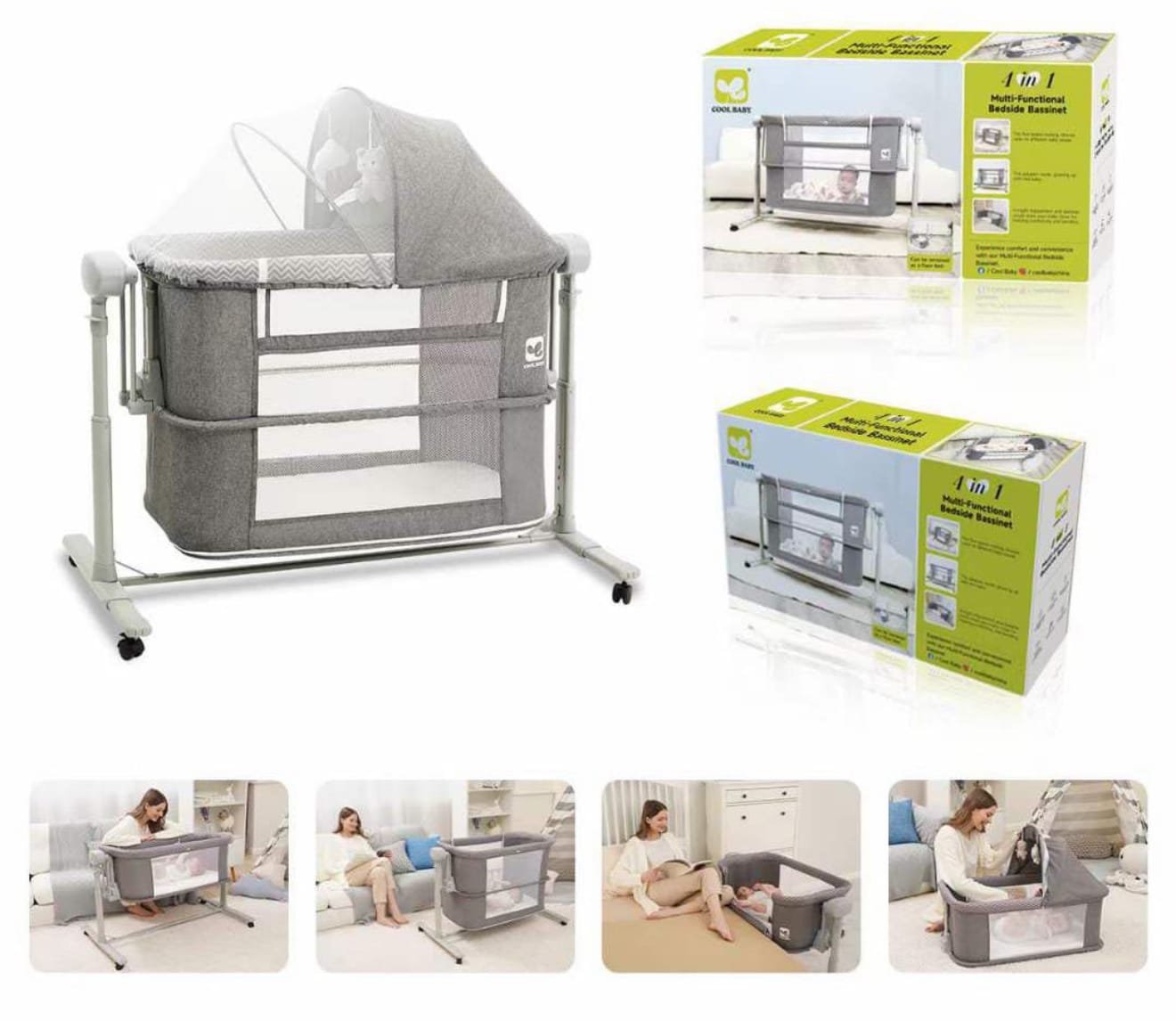 Our multifunctional 4 in 1 electric Cosleeper bassinet has multiple usage modes: 0-3 years old crib, travel cot, splicing bed, storage bed, 0-6 years old playpen, accompany your child to grow. This 4 in 1 electric Cosleeper bassinet is designed to adapt to your family’s needs.