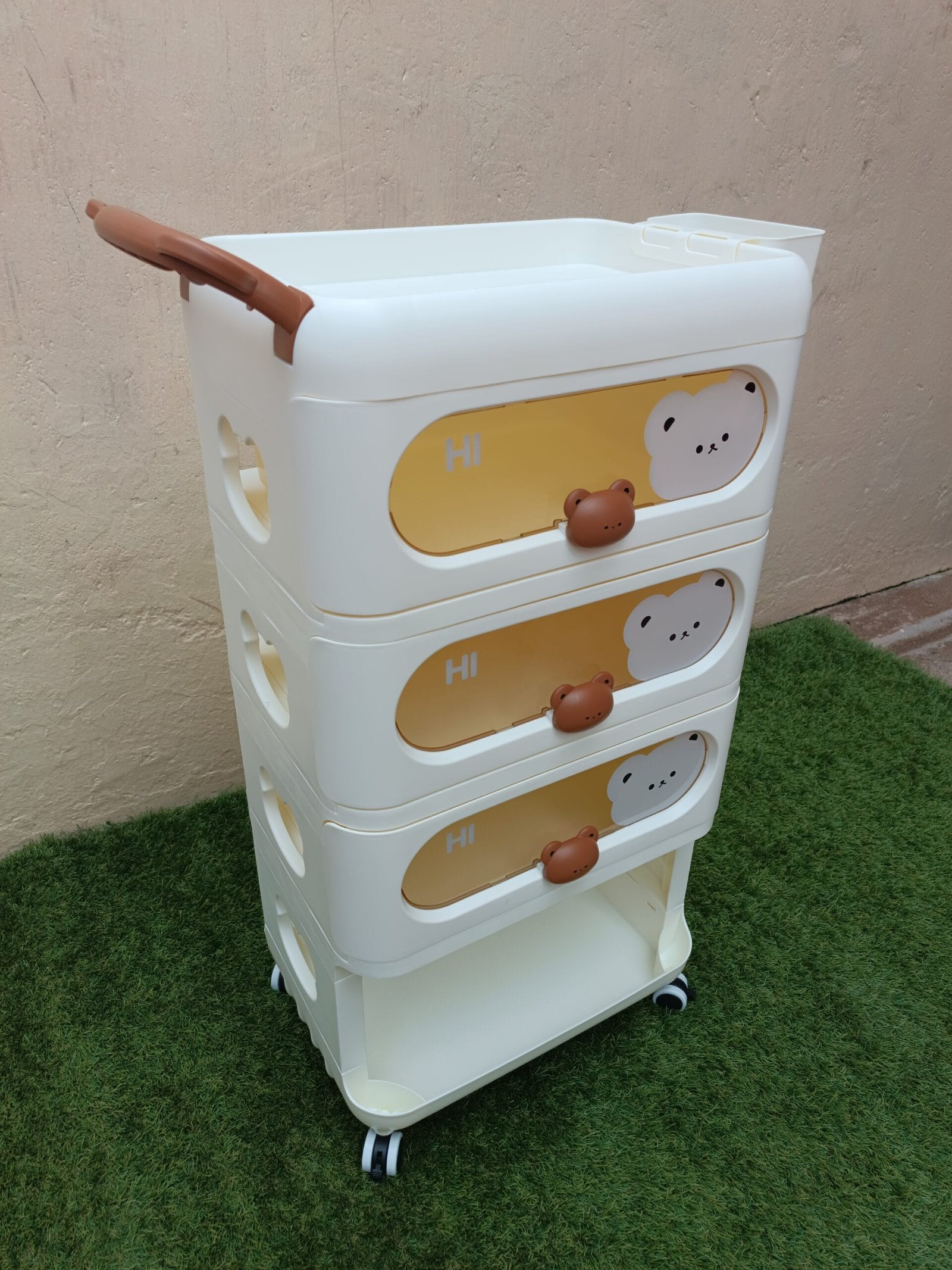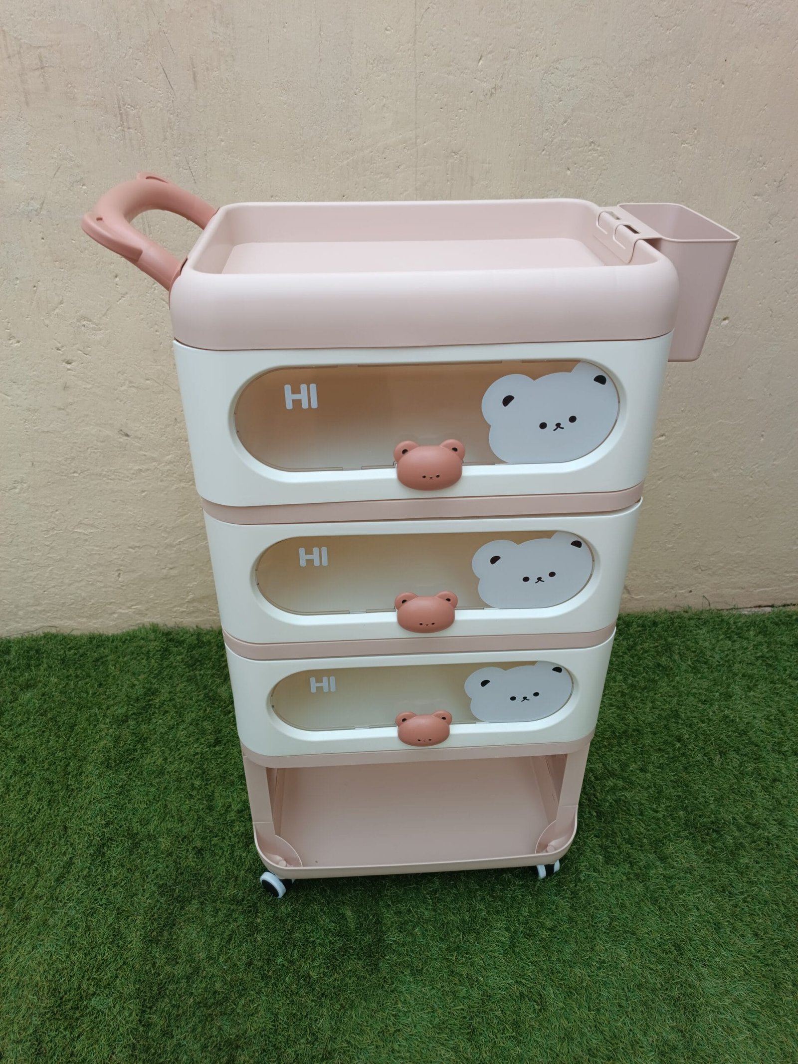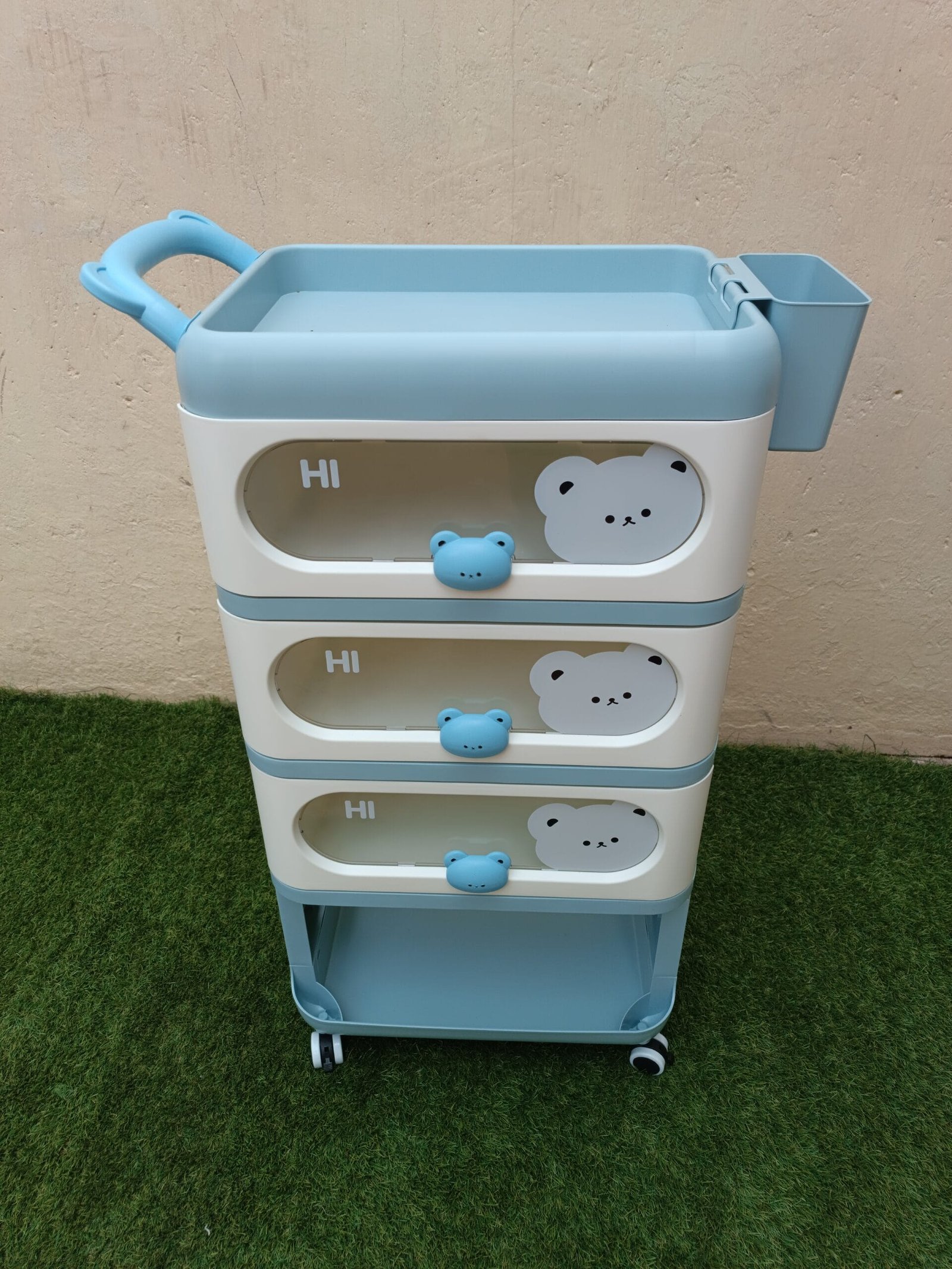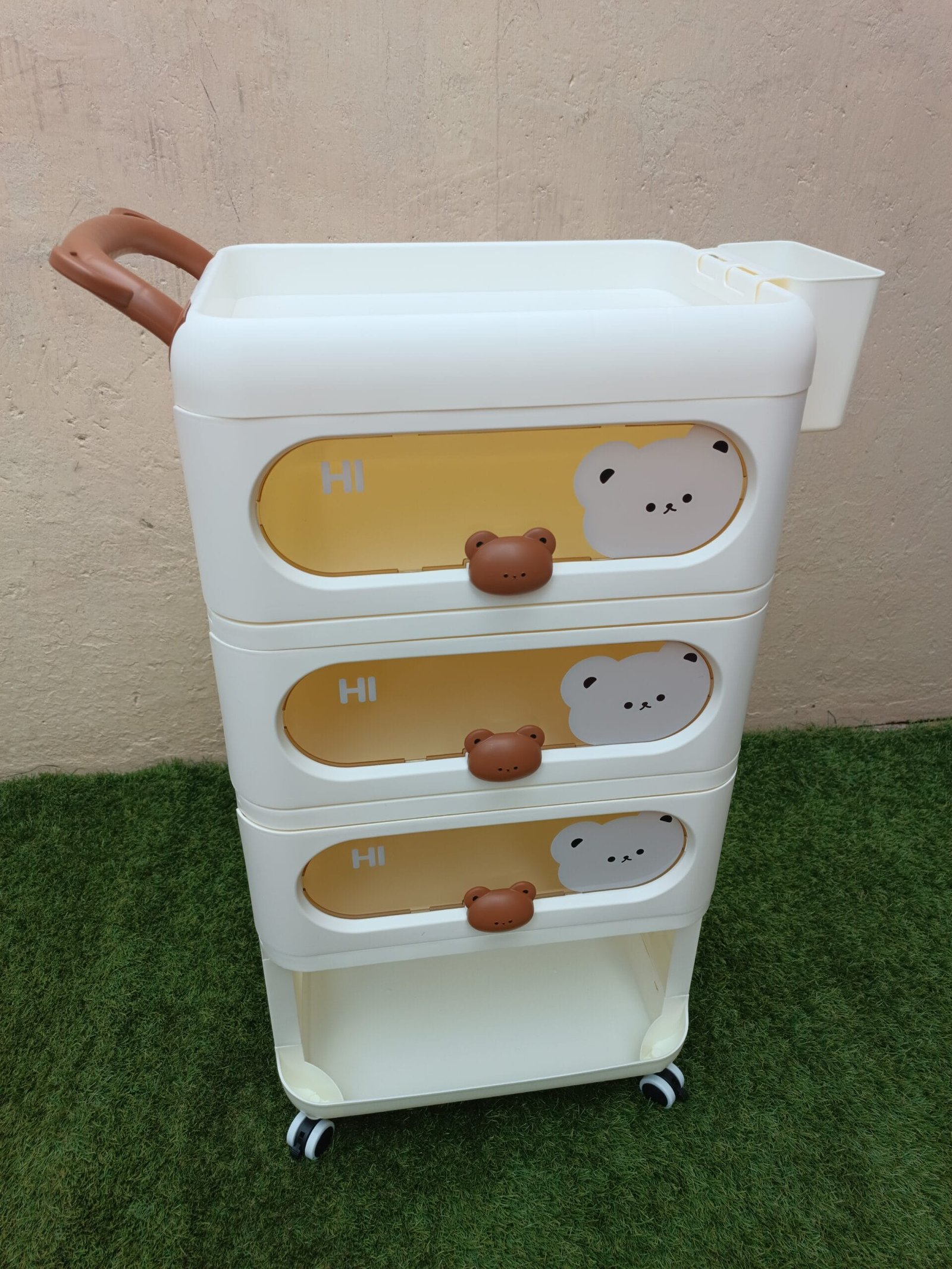 4 tier multipurpose baby supplies movable cart helps you arrange all your baby items within reach. Organize your space with this 4-tier multipurpose baby supplies movable Cart. Designed with a mobile structure for effortless movement, it offers versatile storage for baby supplies, snacks, bathroom essentials, or bedroom items. Its modern design and compact size make it an excellent choice for any room.