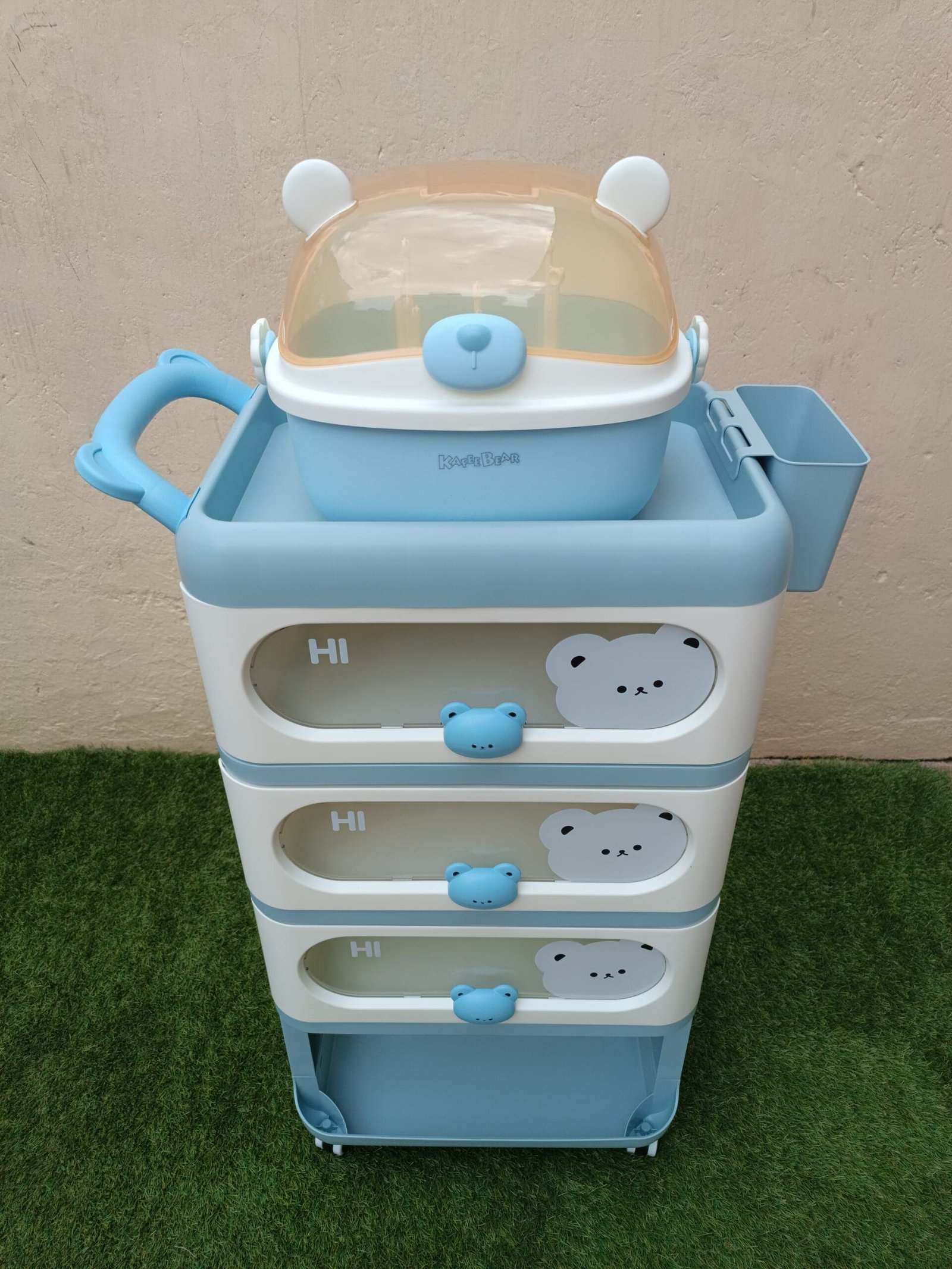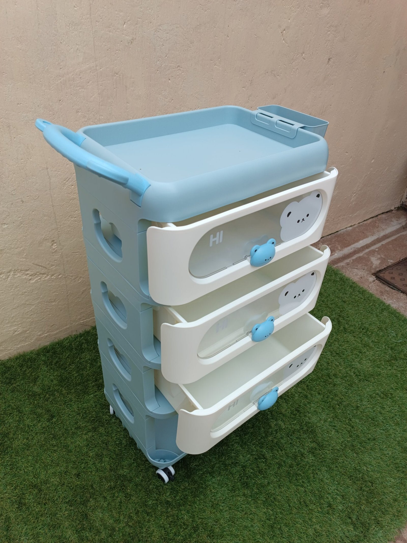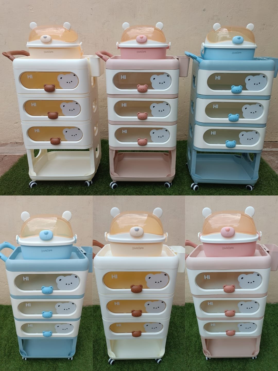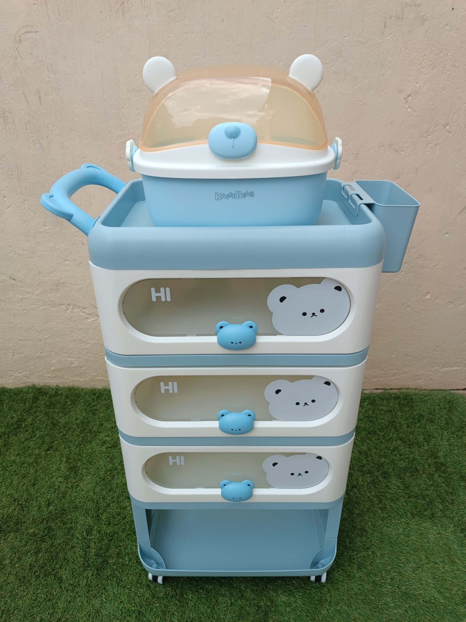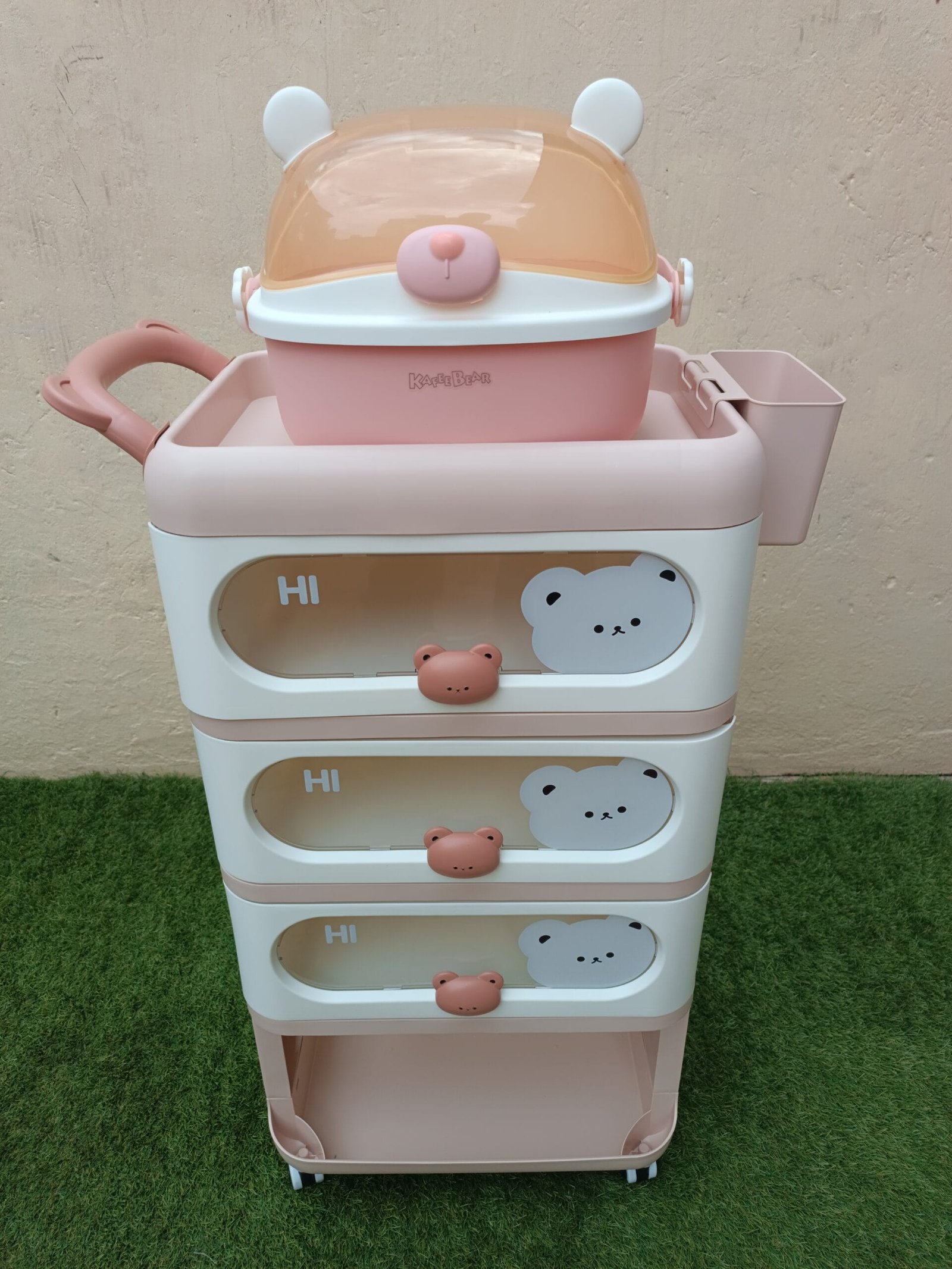 4 tier multipurpose baby supplies movable cart helps you arrange all your baby items within reach. Organize your space with this 4-tier multipurpose baby supplies movable Cart. Designed with a mobile structure for effortless movement, it offers versatile storage for baby supplies, snacks, bathroom essentials, or bedroom items. Its modern design and compact size make it an excellent choice for any room.