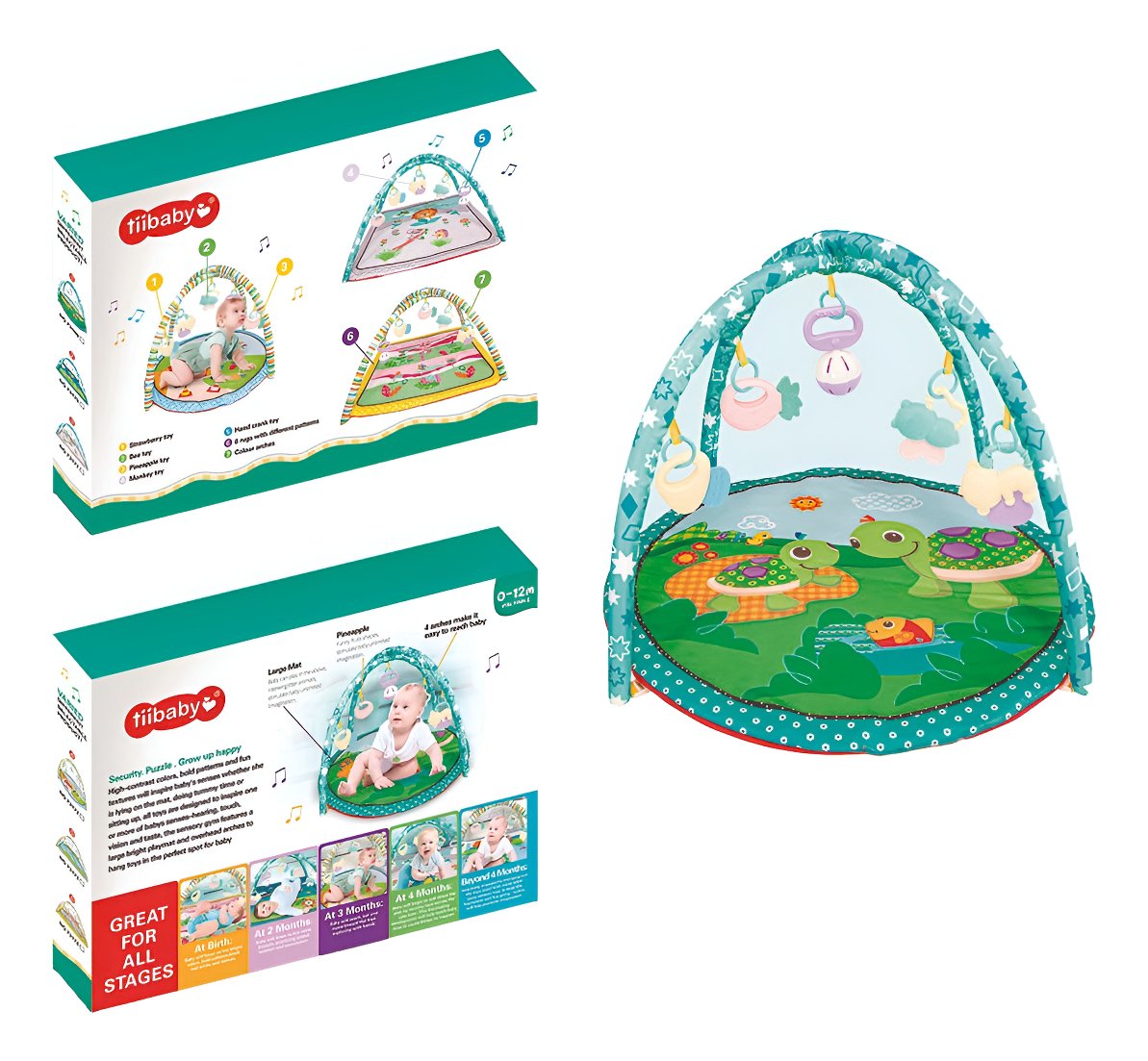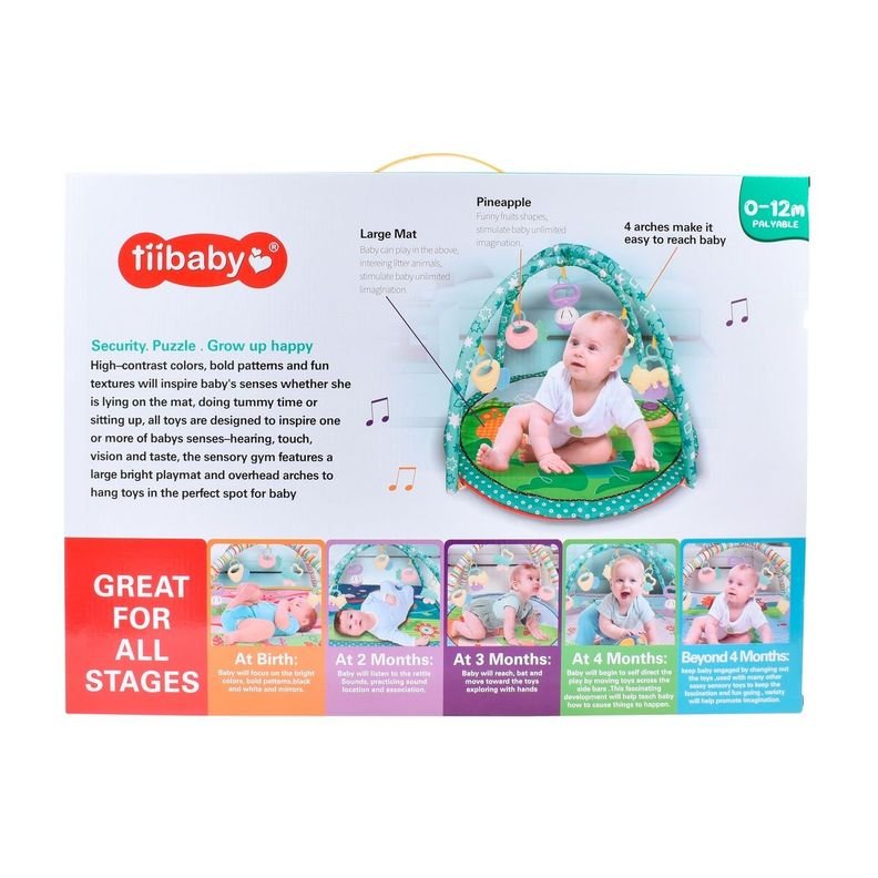 This is a Baby play mat and newborn activity gym, suitable from birth to 12 months