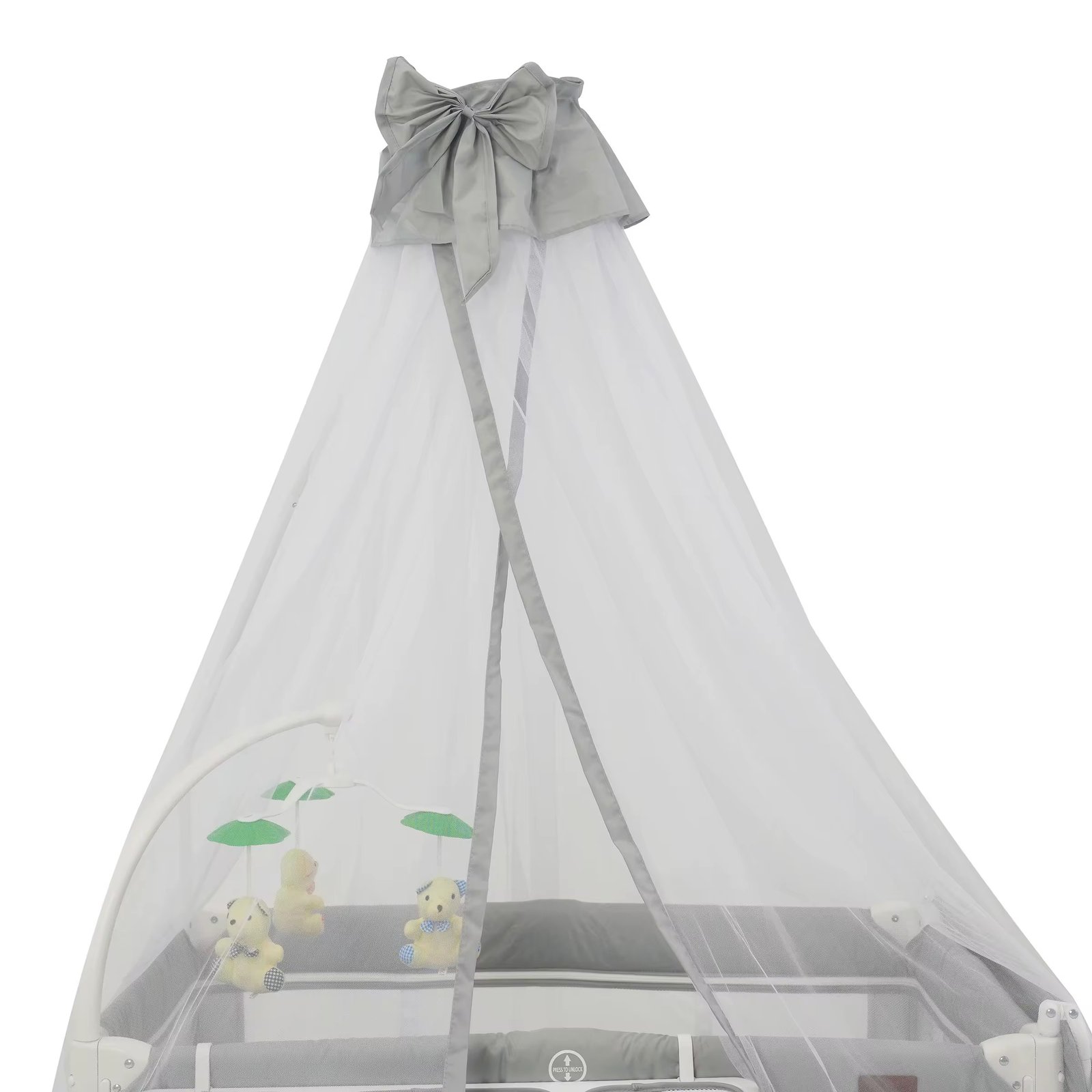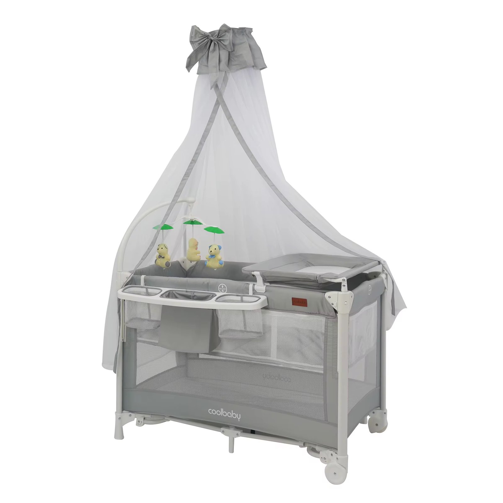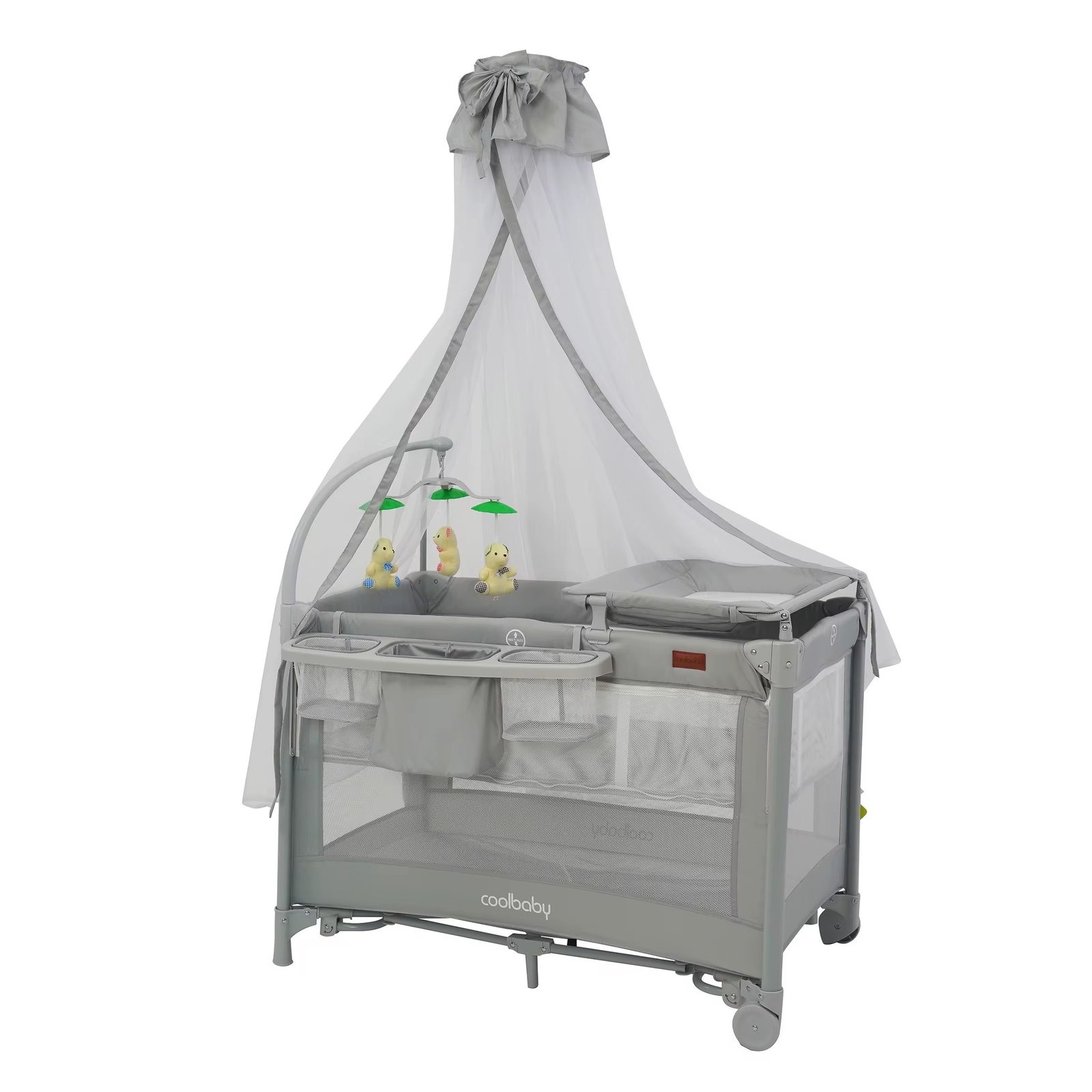 This Baby Playpen Bed Cosleeper Baby Crib With Changing Table And Overhead Toys has several crucial features. They Include: double-layer design for babies of different ages. It has diaper changing station which provides a place for quick diaper changes, and it can be detached to wash, swung into and out of position. This baby travel cot is easy to set up and can be moved from room to room with ease.
