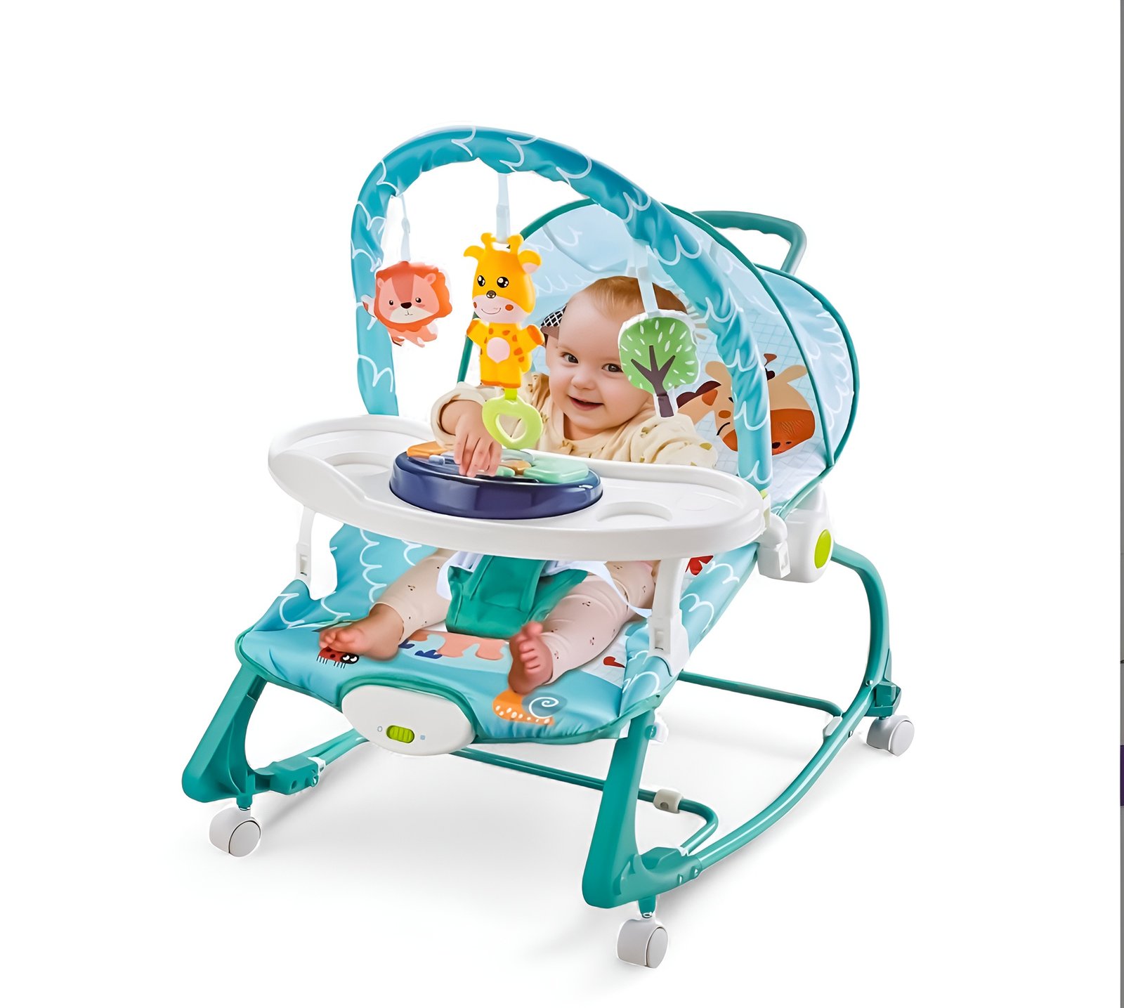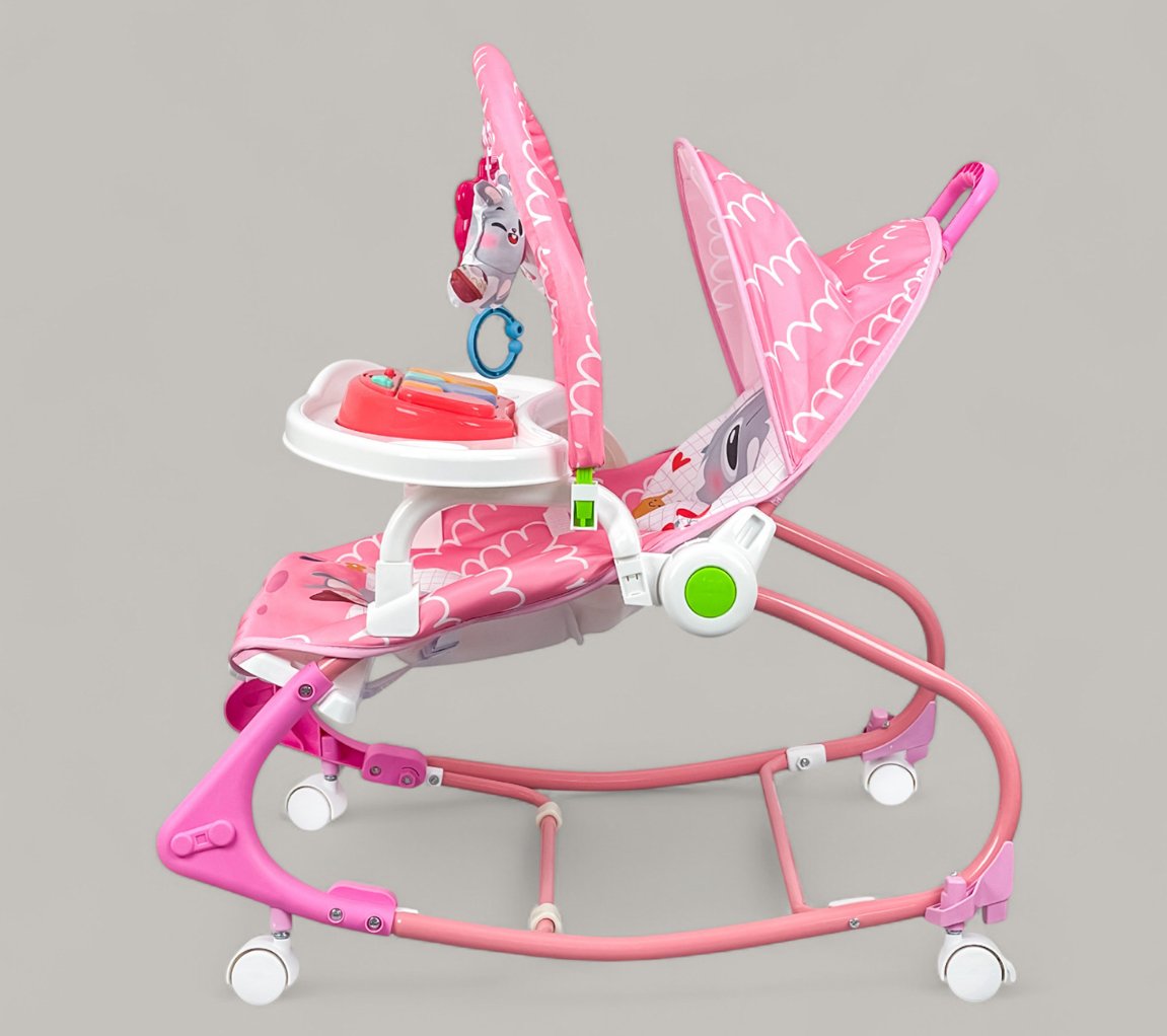 - It includes a removable toy bar with hanging toys to engage the baby.