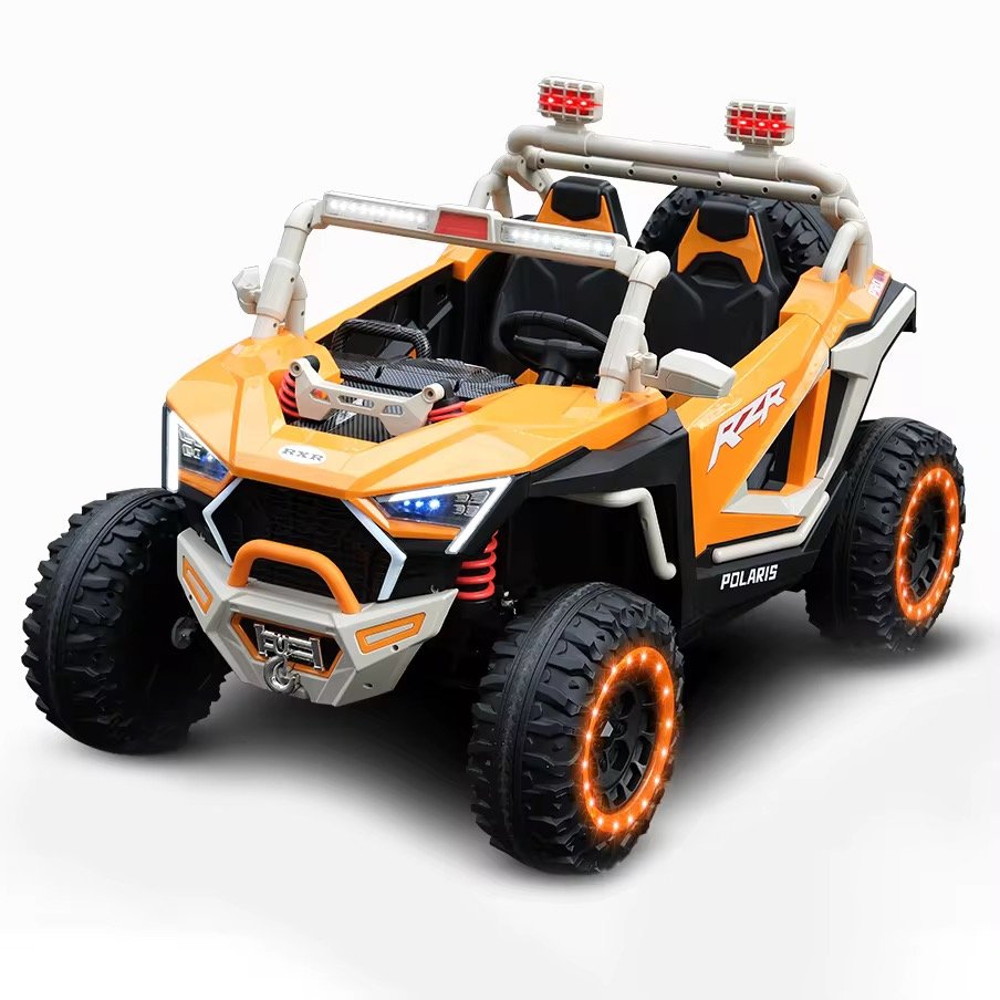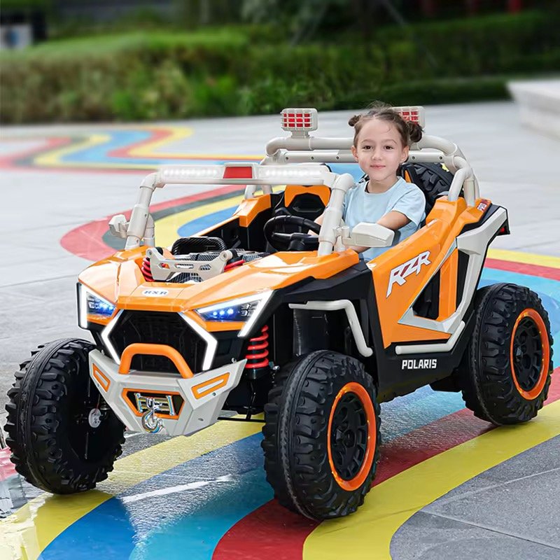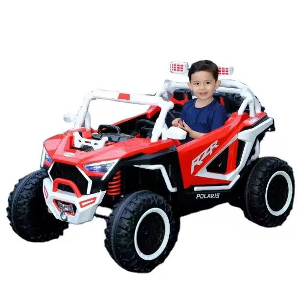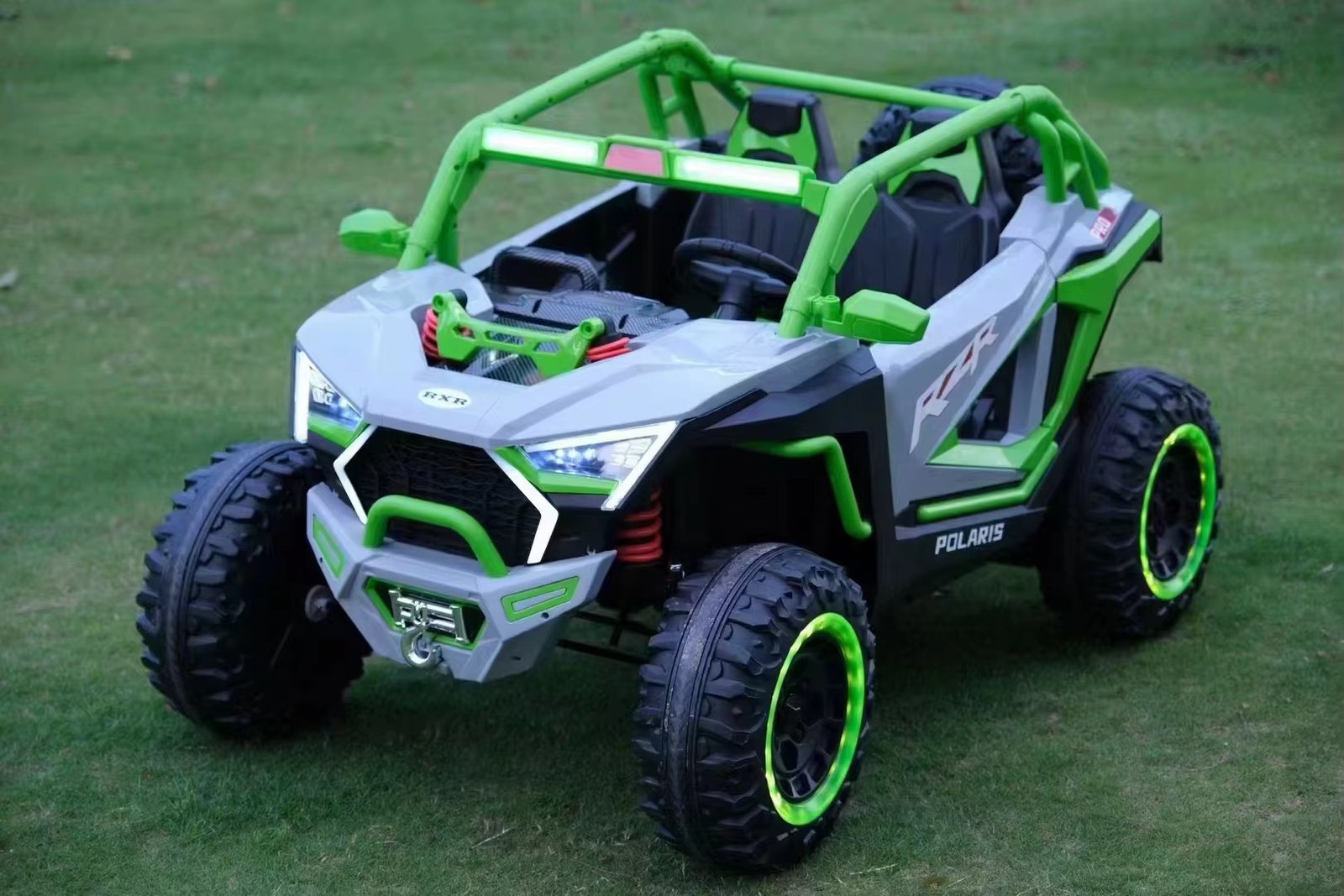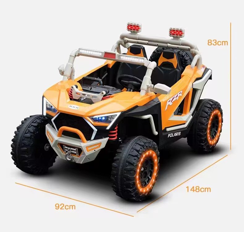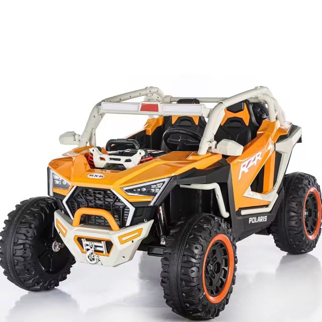 This is a kids’ electric ride-on toy car modeled after a Polaris RZR off-road vehicle.