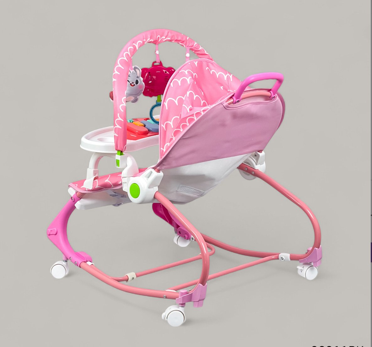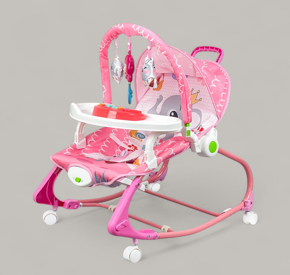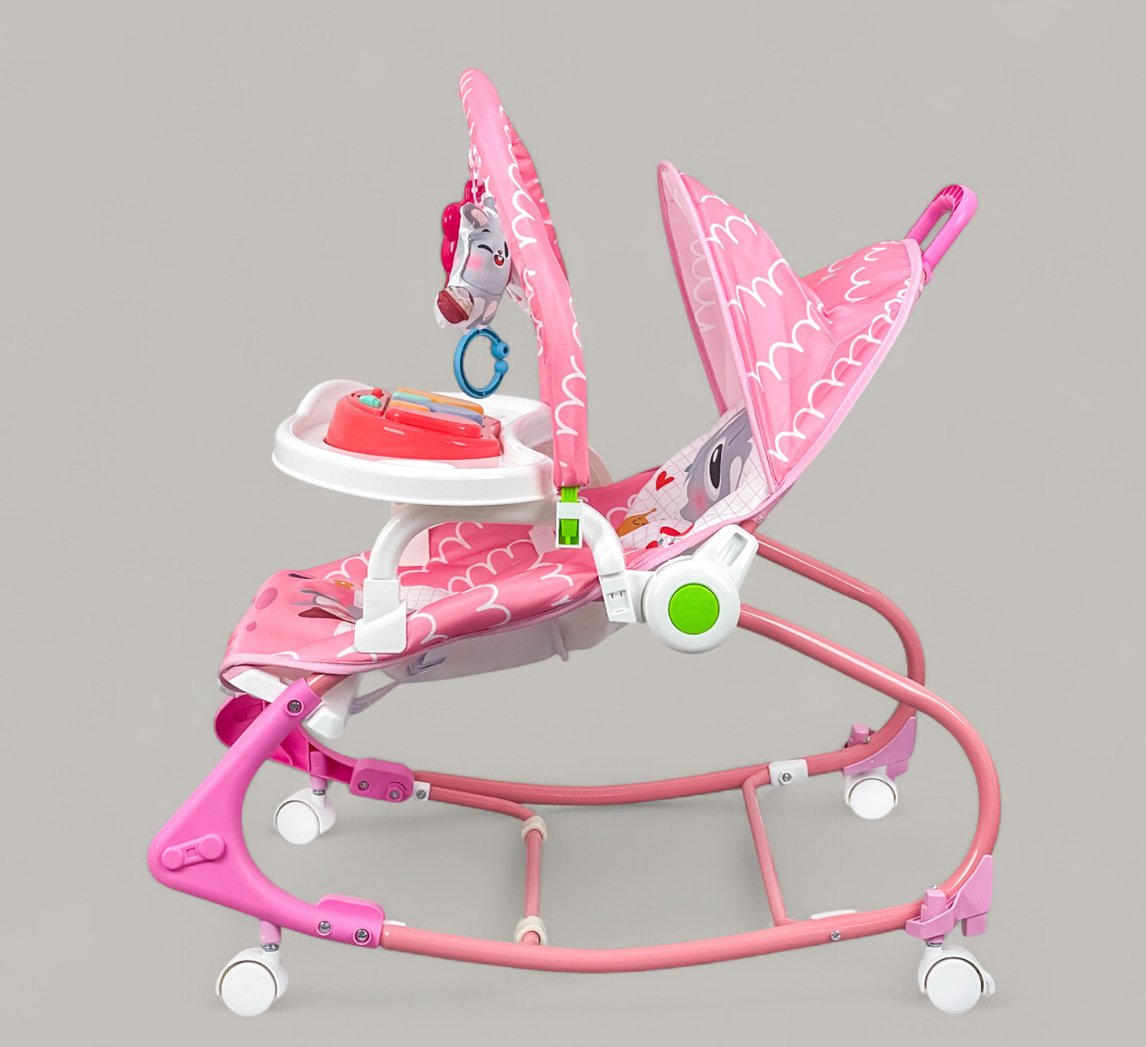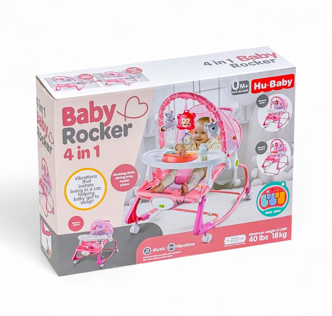 - 4-in-1 design: Rocker, dining chair, play seat, and music station