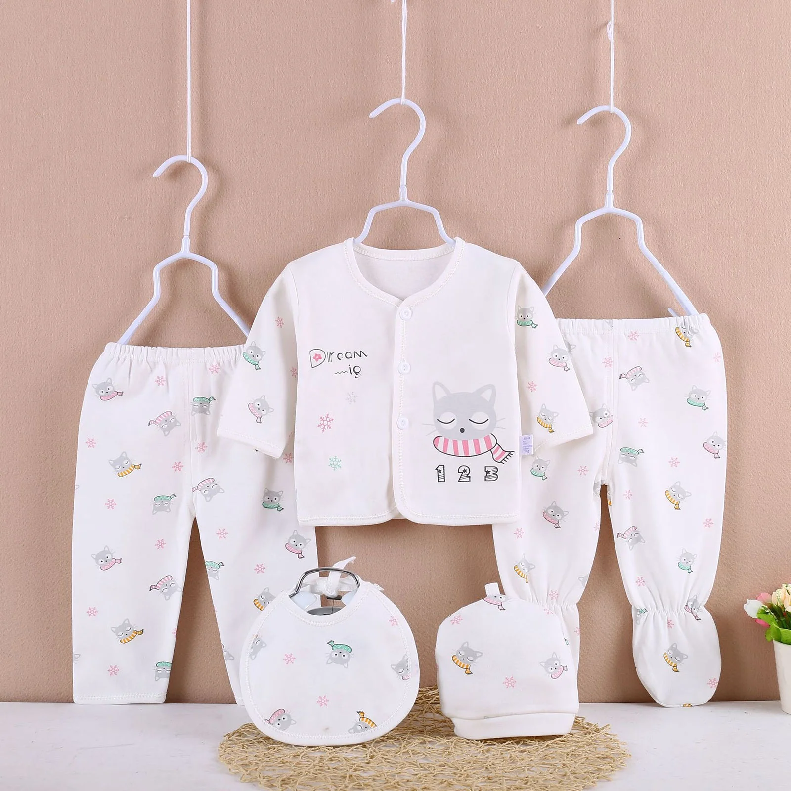 Newborn receiving set has 5pcs. Dressing your little one has never been so easy, get this all in one set baby wear and enjoy the comfort and luxury that comes with beautiful colors, excellent quality and good fitting for your baby.